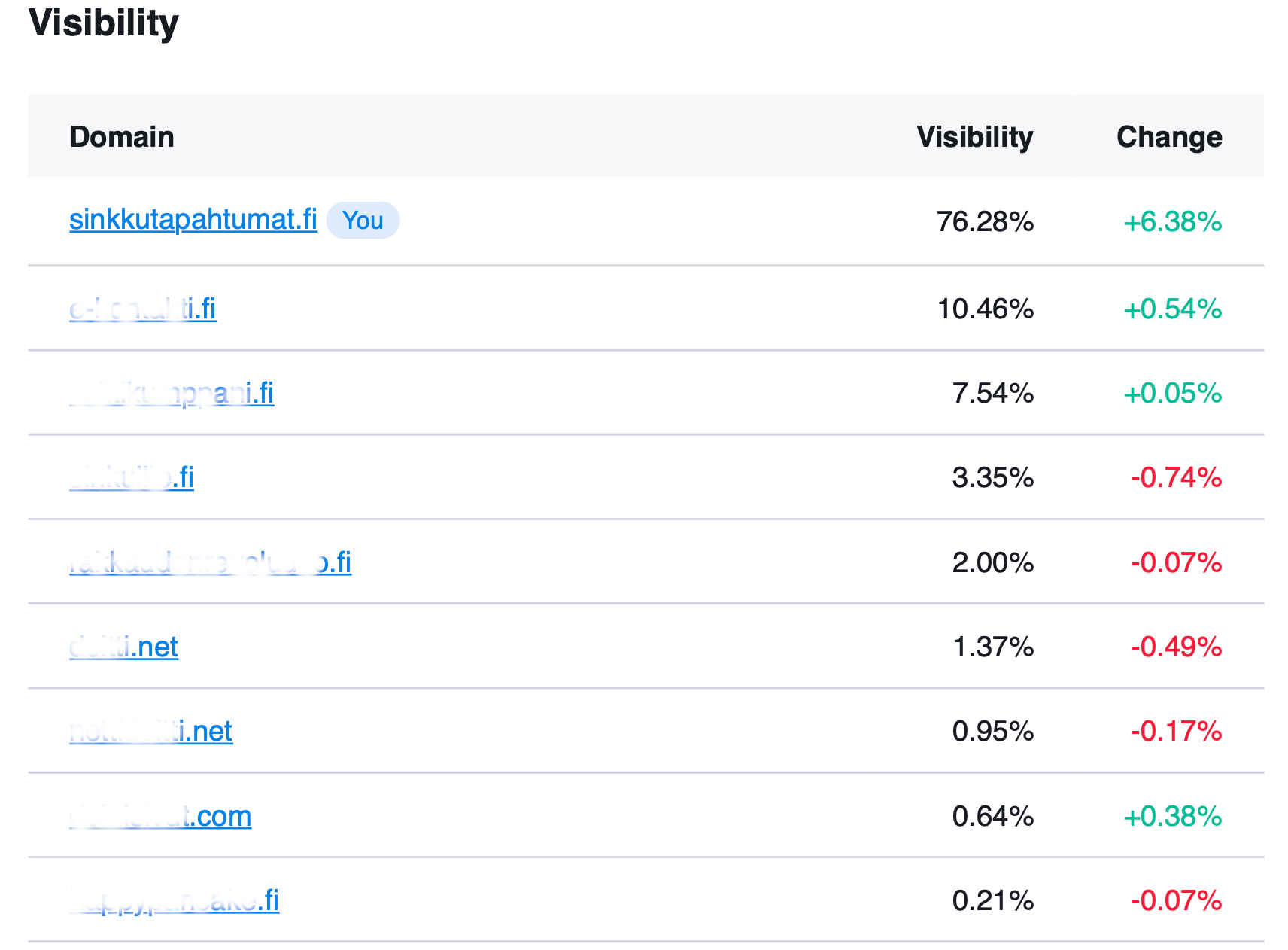 Sivuston näkyys on merkittävästi korkeampi kuin kilpailijoiden.